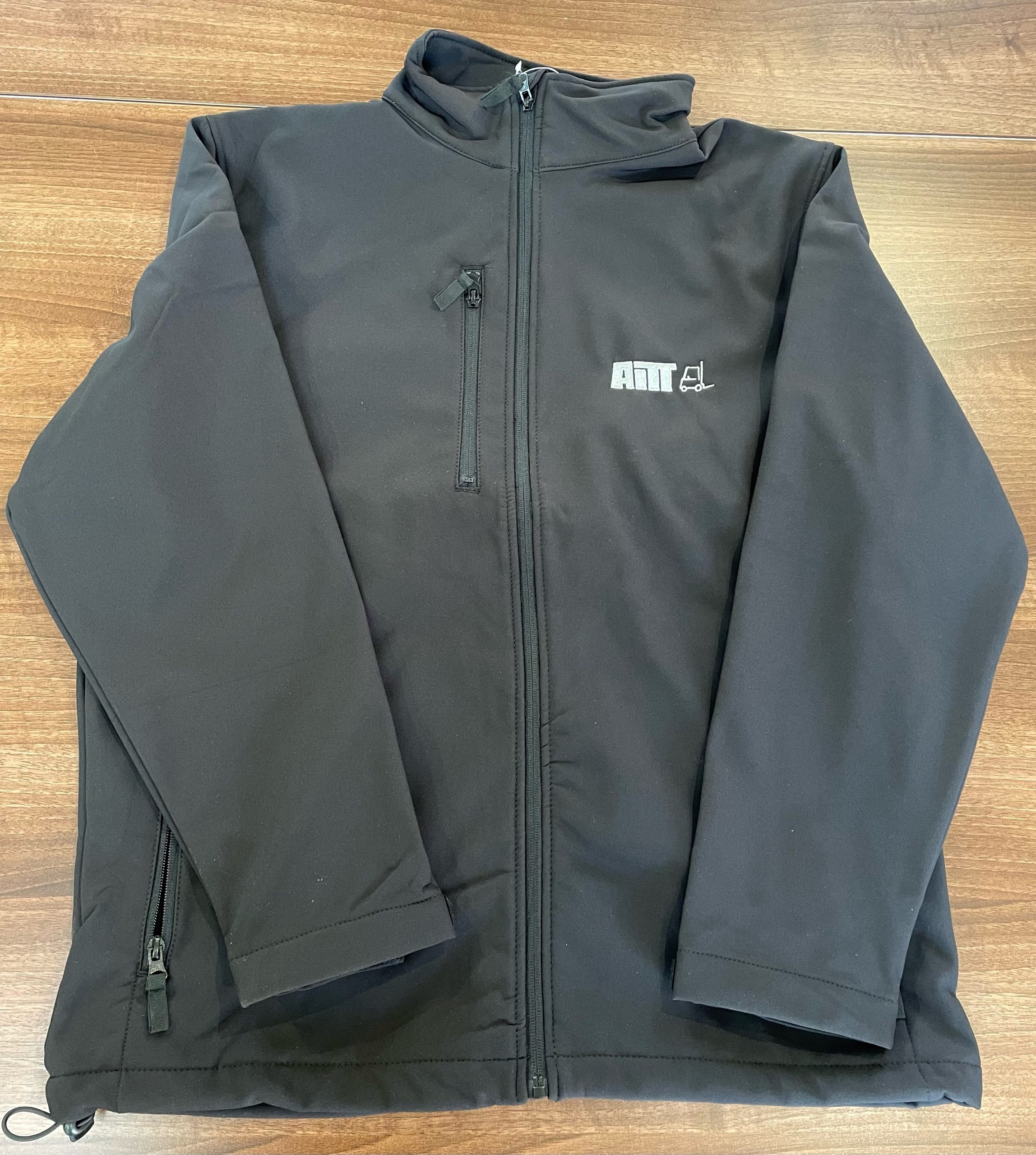 A black soft shell jacket, with the AITT logo embroidered in white.